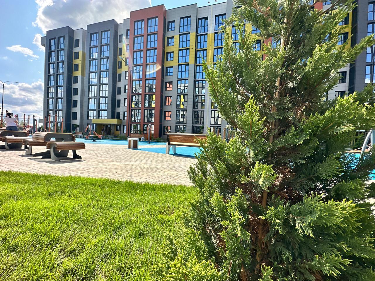 Благоустроенная придомовая территория, детские игровые площадки, спортивные площадки с безопасным покрытием для командных игр, зоны отдыха с арт-объектами.