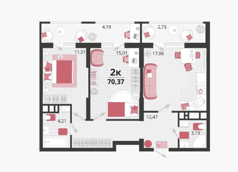 Продается 2-х комн. новостройка, 70.37 кв.м., 17/18 эт