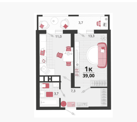Продается однокомнатная новостройка, 39 кв.м., 14/18 эт