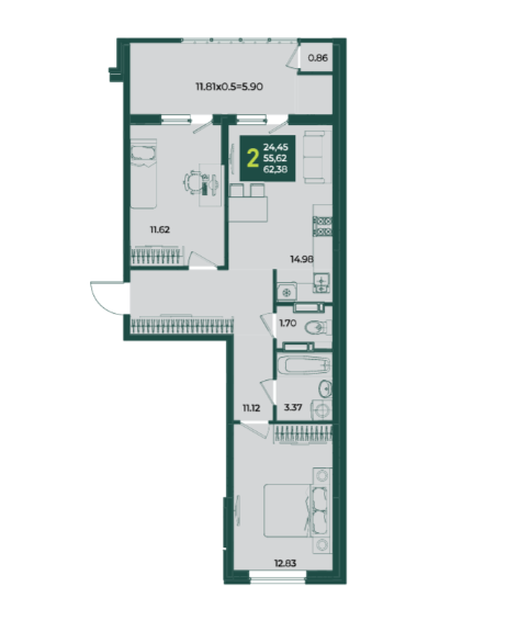 Продается 2-х комн. новостройка, 62.38 кв.м., 11/21 эт