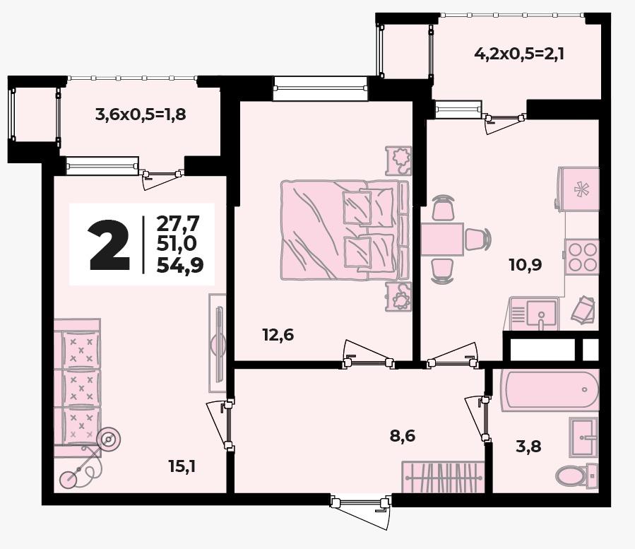 Продается 2-х комн. новостройка, 54.9 кв.м., 5/8 эт