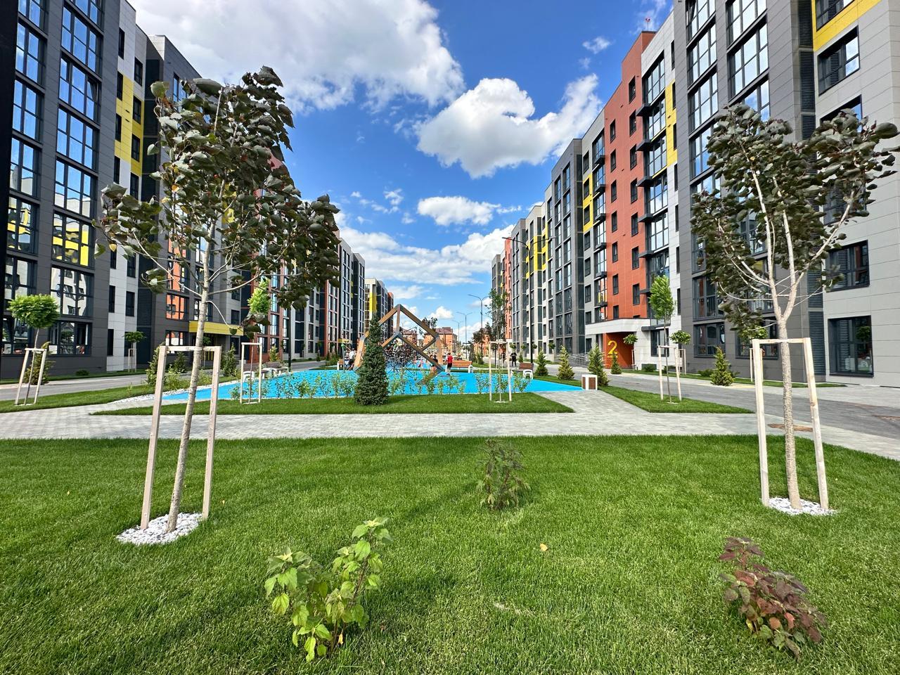 Благоустроенная придомовая территория, детские игровые площадки, спортивные площадки с безопасным покрытием для командных игр, зоны отдыха с арт-объектами.