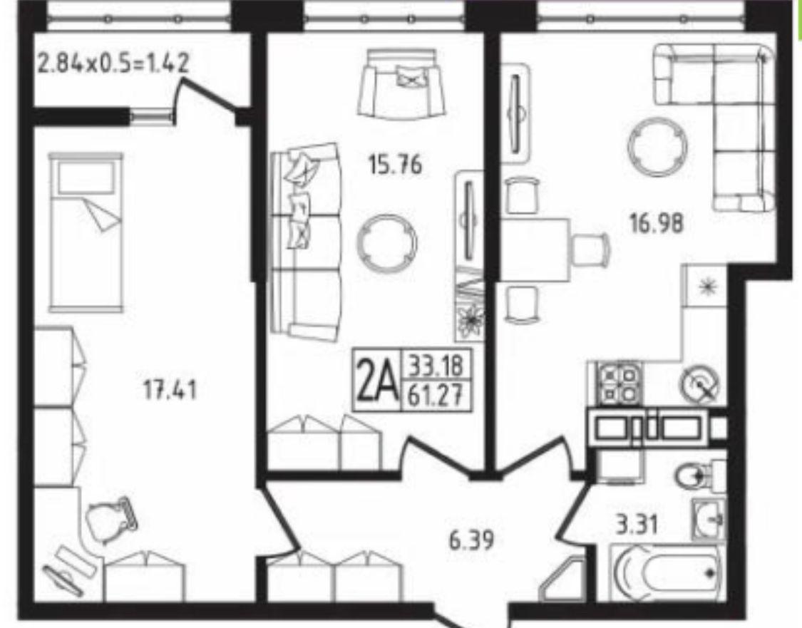 Продается 2-х комн. новостройка, 59.2 кв.м., 5/9 эт
