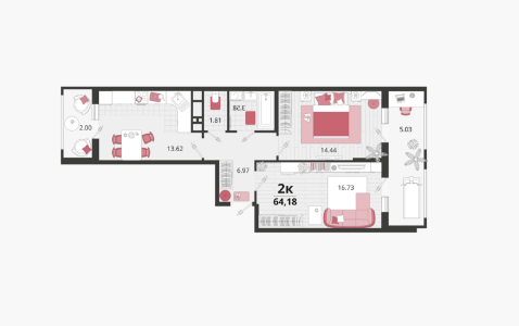 Продается 2-х комн. новостройка, 64.82 кв.м., 4/21 эт
