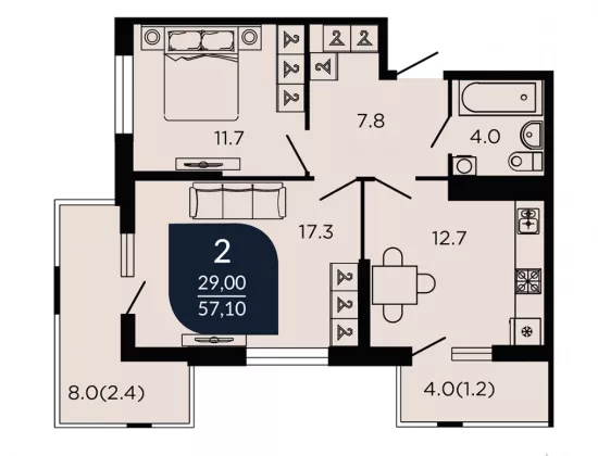 В избранное Двухкомнатная квартира