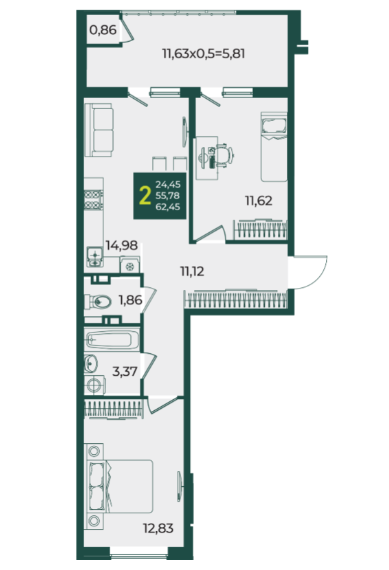 Продается 2-х комн. новостройка, 62.45 кв.м., 17/21 эт