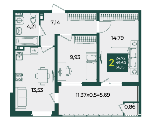 Продается 2-х комн. новостройка, 56.15 кв.м., 9/18 эт