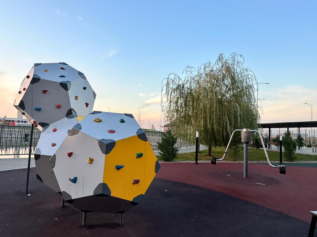 Благоустроенная придомовая территория, детские игровые площадки, спортивные площадки с безопасным покрытием для командных игр, зоны отдыха с арт-объектами.