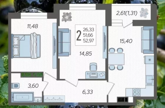 Продается 2-х комн. новостройка, 51.79 кв.м., 15/16 эт