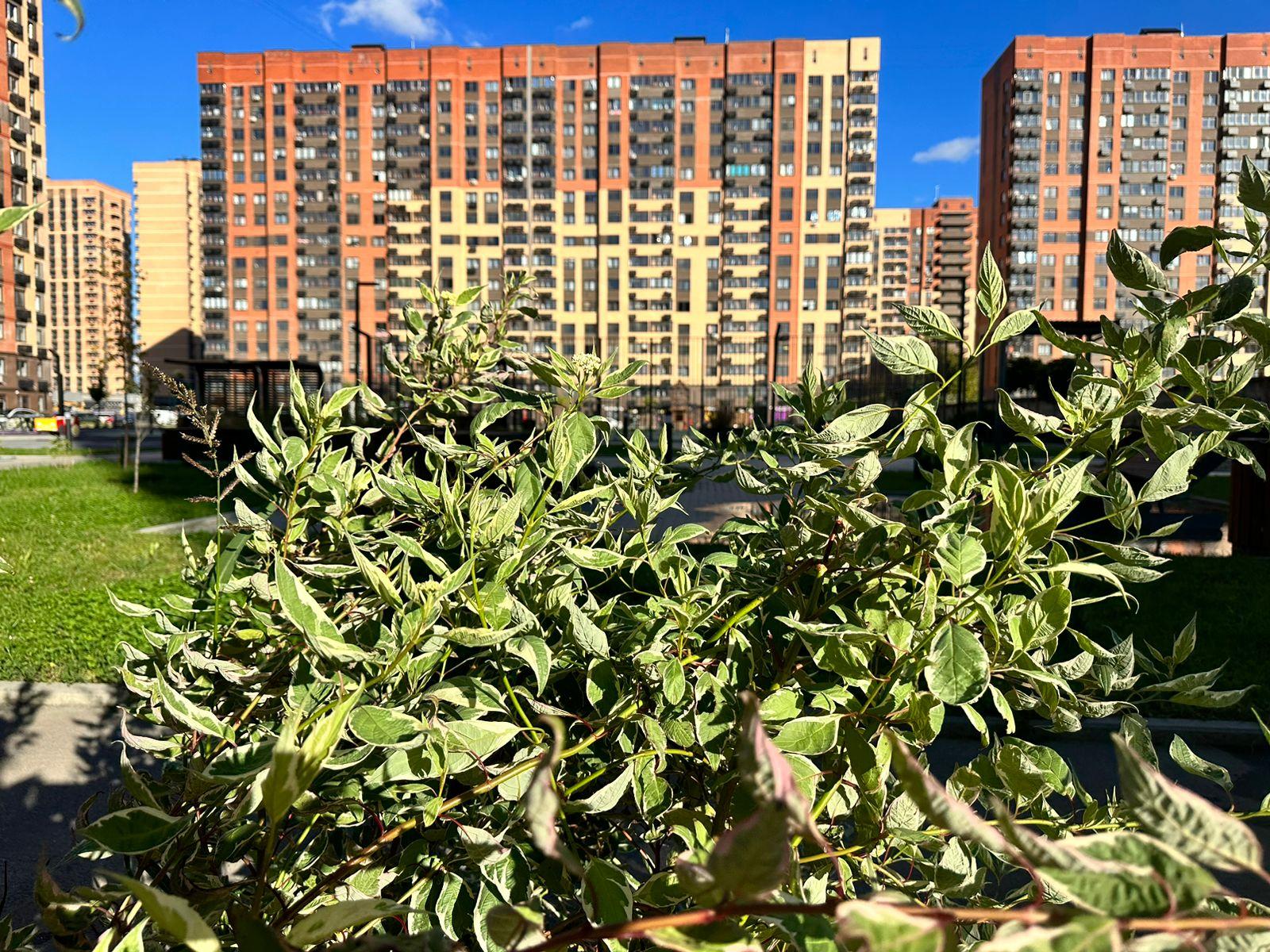 На территории семейного квартала "СМОРОДИНА" по-настоящему много живой зелени: