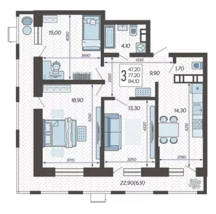 Продается 3-х комн. новостройка, 85.1 кв.м., 1/12 эт