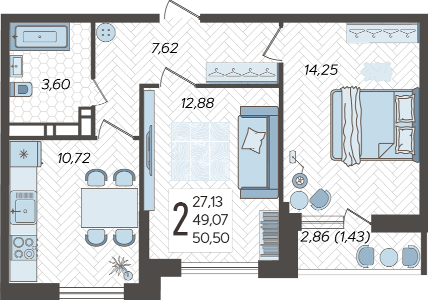 | Площадь, кв.м. | 50.5 |