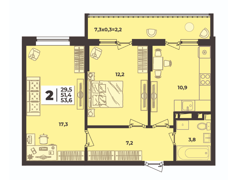 В избранное Двухкомнатная квартира