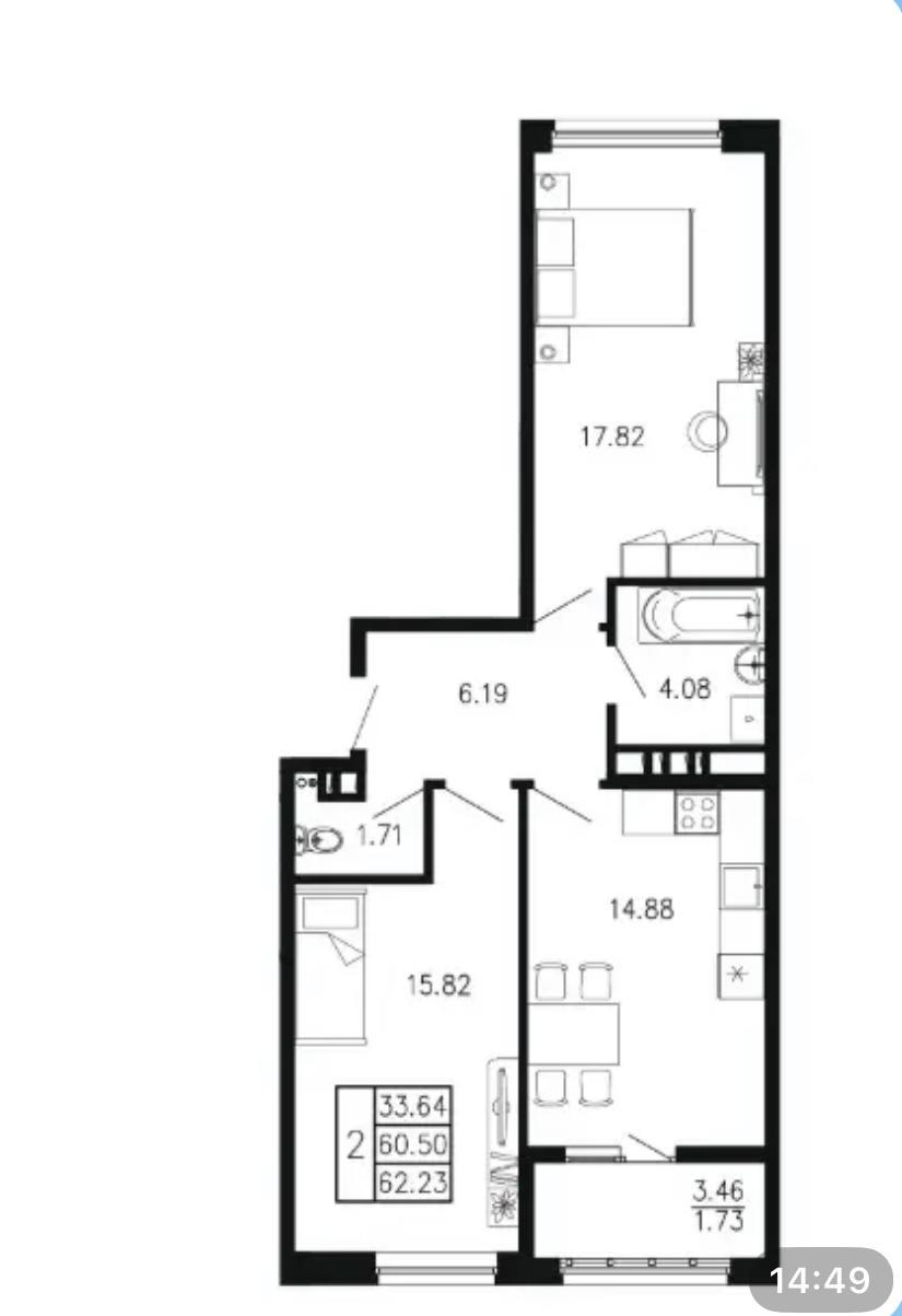 Продается 2-х комн. новостройка, 62.23 кв.м., 4/8 эт