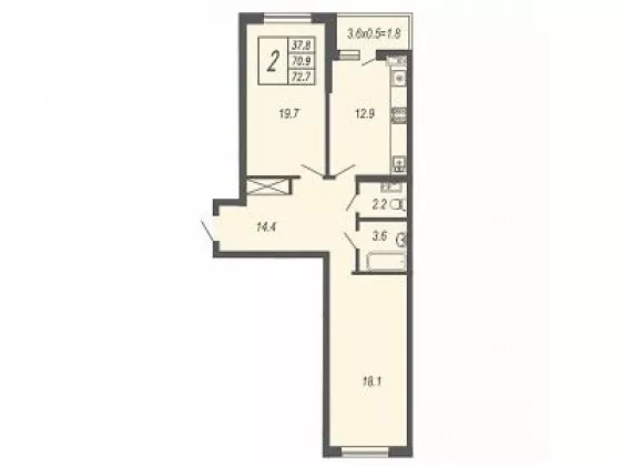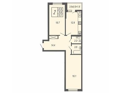 Продается 2-х комн. новостройка, 72.7 кв.м., 10/19 эт
