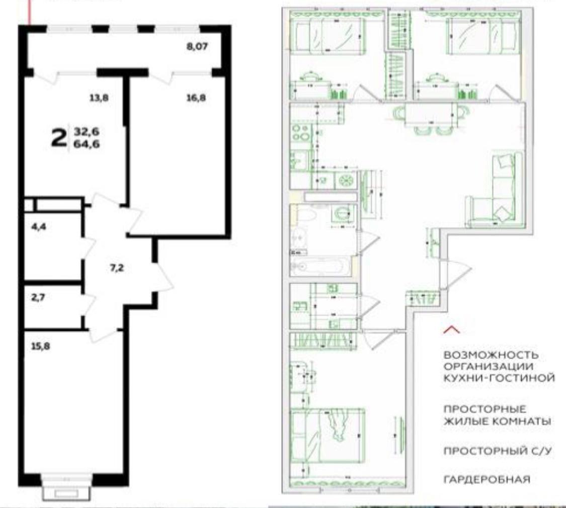 | Площадь, кв.м. | 64.6 |