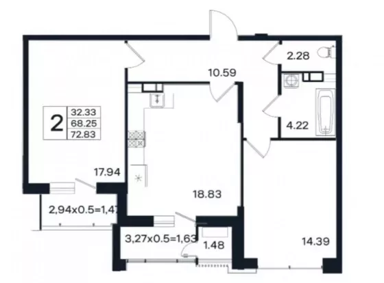 Продается 2-х комн. новостройка, 72.83 кв.м., 6/11 эт