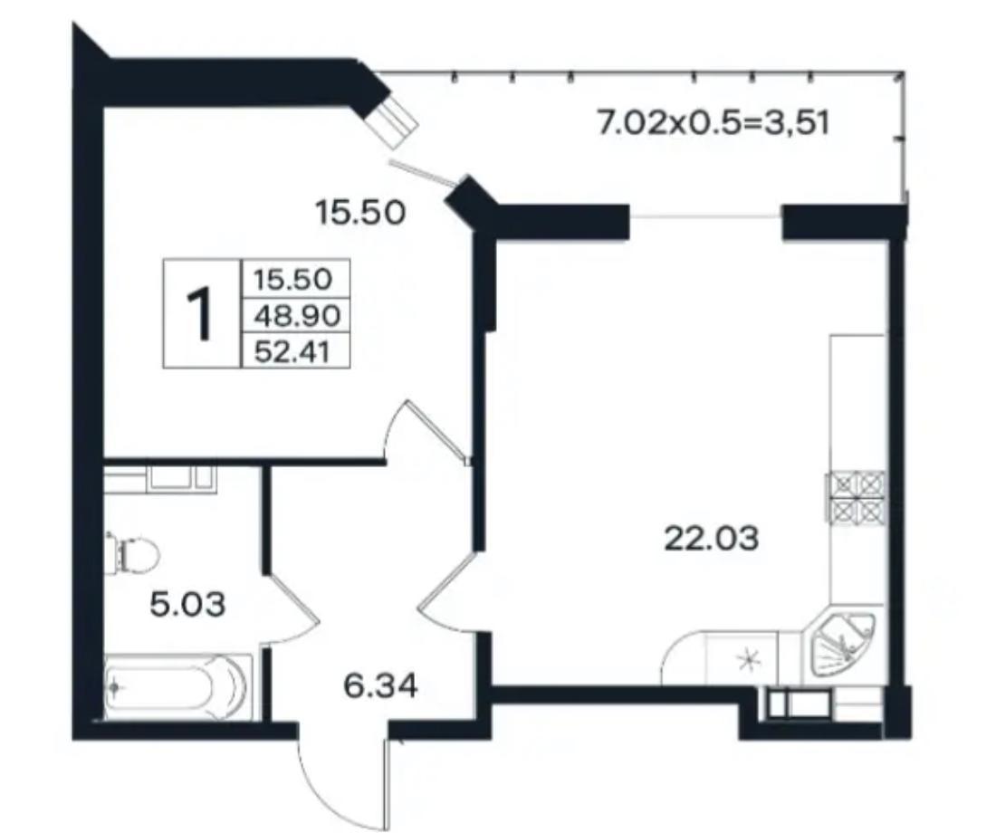Продается однокомнатная новостройка, 52.41 кв.м., 7/11 эт