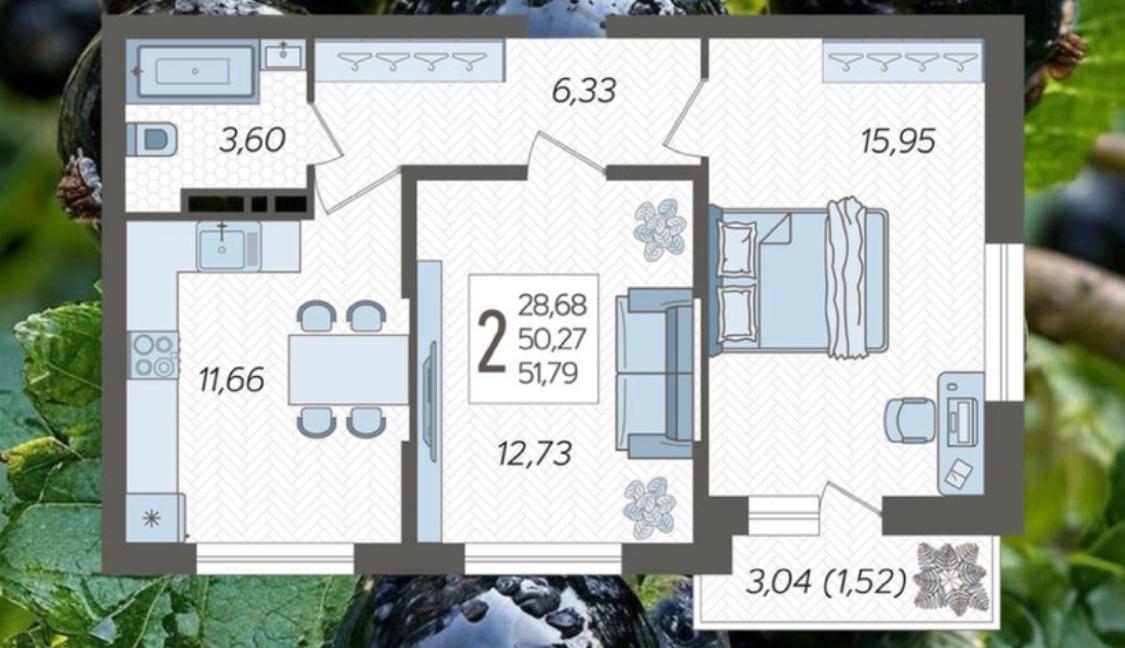 Продается 2-х комн. новостройка, 51.79 кв.м., 3/12 эт