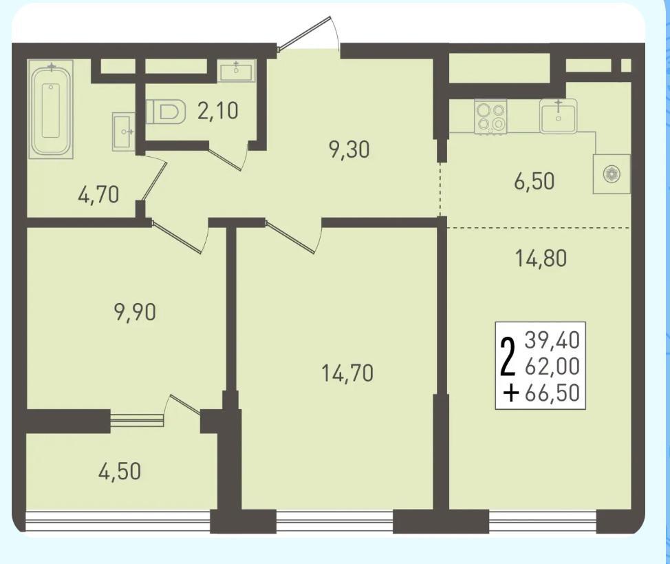 Продается 2-х комн. новостройка, 66.5 кв.м., 2/8 эт