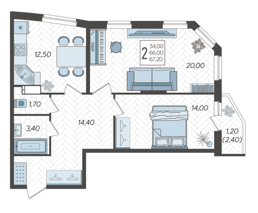 Продается 2-х комн. новостройка, 67.2 кв.м., 9/16 эт