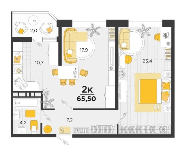 В избранное Двухкомнатная квартира