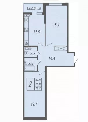 Продается 2-х комн. новостройка, 72.7 кв.м., 9/20 эт