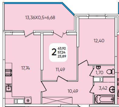 Продается 2-х комн. новостройка, 63.92 кв.м., 13/24 эт