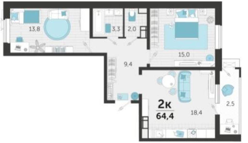 Продается 2-х комн. новостройка, 64 кв.м., 14/25 эт