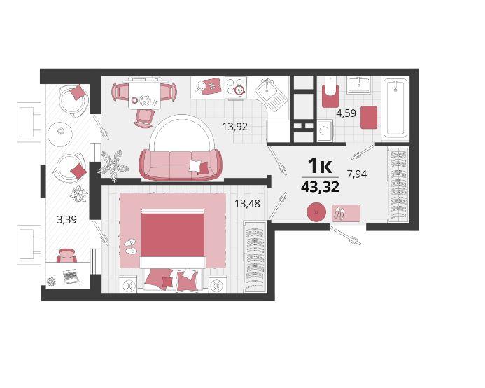 Продается 2-х комн. новостройка, 43.3 кв.м., 8/18 эт
