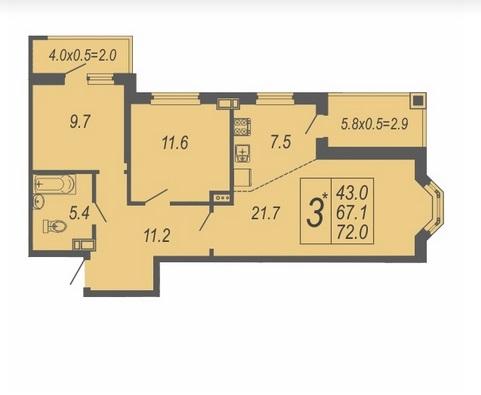 Продается 2-х комн. новостройка, 72.3 кв.м., 11/19 эт