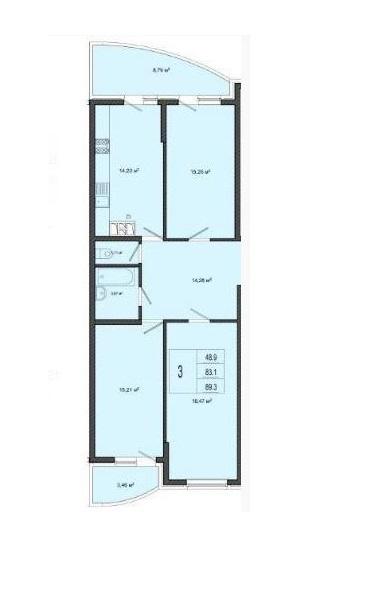 Продается 3-х комн. новостройка, 89.3 кв.м., 12/18 эт