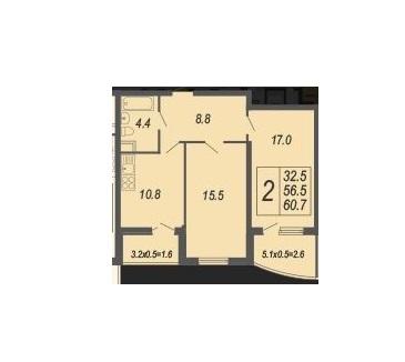 Продается 2-х комн. новостройка, 60.5 кв.м., 12/19 эт
