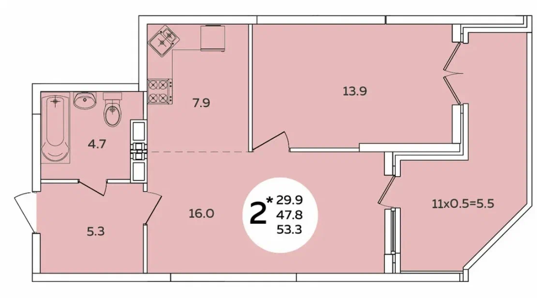 Продается 2-х комн. новостройка, 53.3 кв.м., 5/24 эт