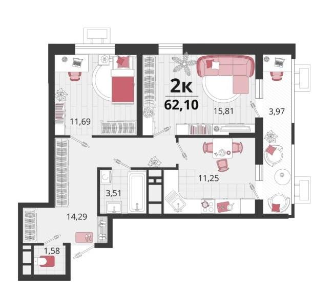 | Площадь, кв.м. | 62.1 |