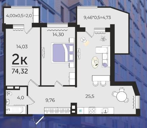 Продается 2-х комн. новостройка, 74.3 кв.м., 12/18 эт