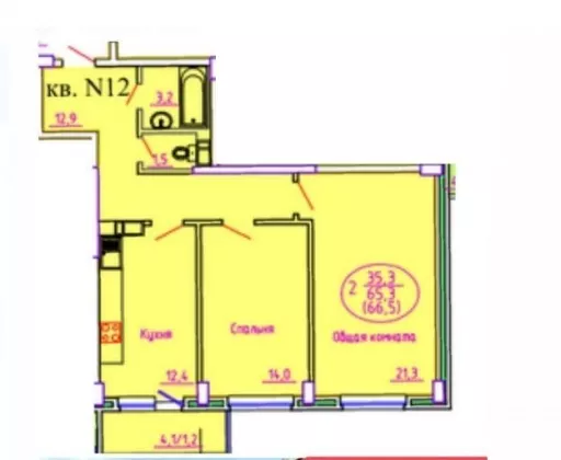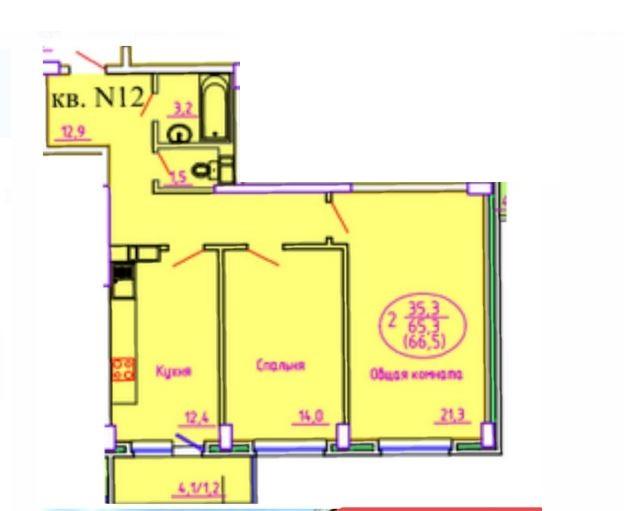 Продается 2-х комн. новостройка, 66.5 кв.м., 6/8 эт