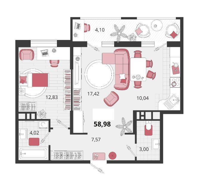 Продается 2-х комн. новостройка, 58.9 кв.м., 16/24 эт