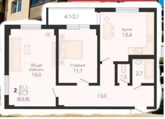Продается 2-х комн. новостройка, 63.8 кв.м., 5/8 эт