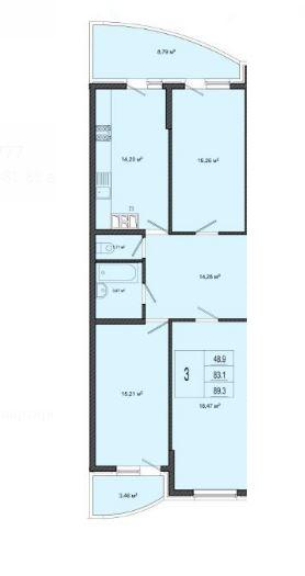 Продается 3-х комн. новостройка, 89.3 кв.м., 14/18 эт