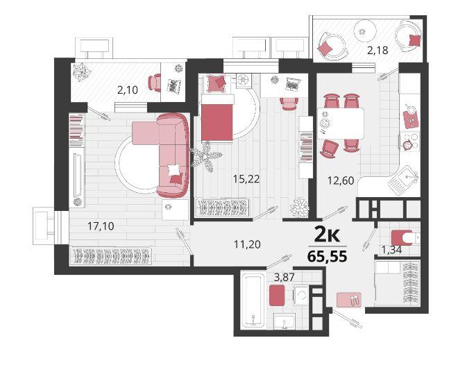 Продается 2-х комн. новостройка, 65.5 кв.м., 12/24 эт