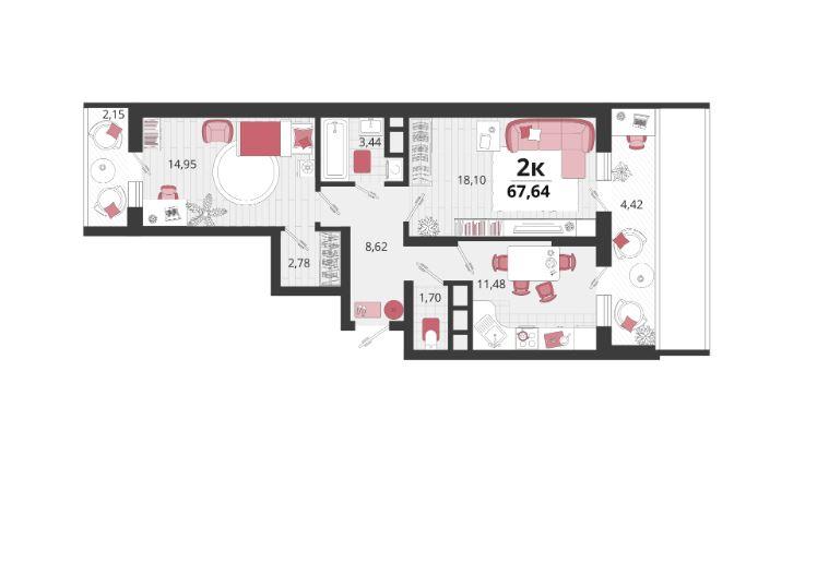 Продается 2-х комн. новостройка, 67.6 кв.м., 12/24 эт
