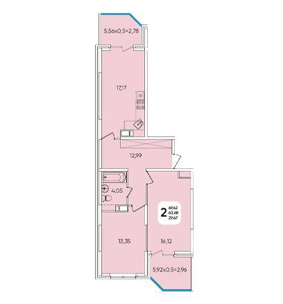 Продается 2-х комн. новостройка, 69.2 кв.м., 10/19 эт
