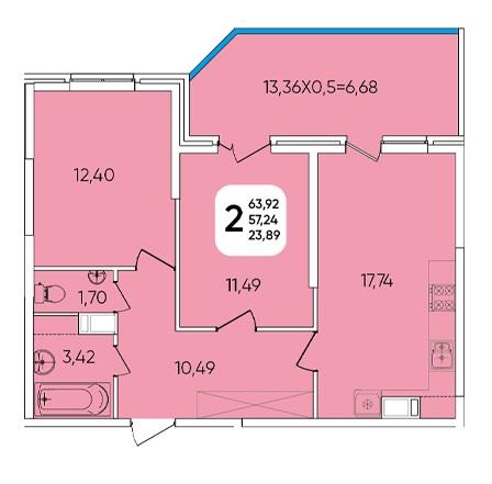 Продается 2-х комн. новостройка, 63.9 кв.м., 9/24 эт