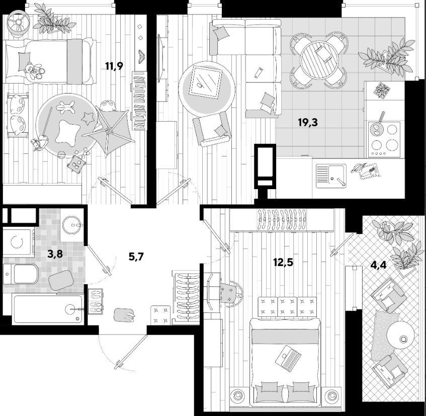 Продается 2-х комн. новостройка, 57.6 кв.м., 7/16 эт