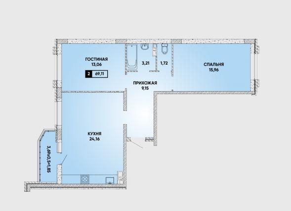 Продается 2-х комн. новостройка, 69.1 кв.м., 15/22 эт
