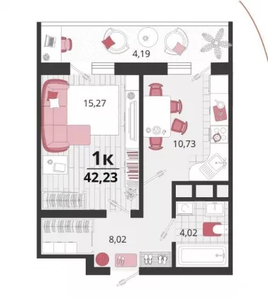 Продается однокомнатная новостройка, 42.23 кв.м., 9/24 эт