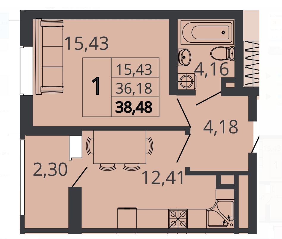 Продается однокомнатная новостройка, 38.4 кв.м., 18/18 эт