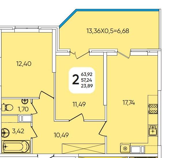 Продается 2-х комн. новостройка, 63.9 кв.м., 9/20 эт