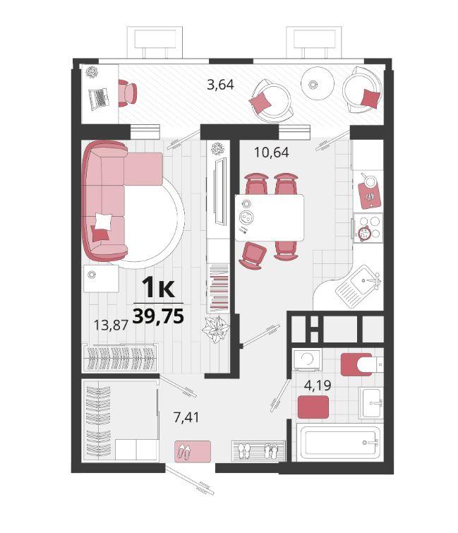 Продается однокомнатная новостройка, 39.7 кв.м., 7/18 эт